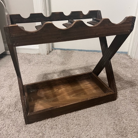 Great condition! This wine rack can store up to 4 bottles on rack and smaller items on bottom.