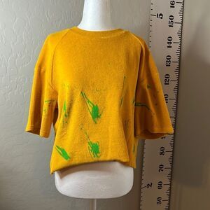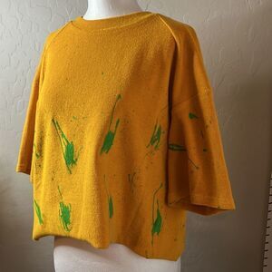 WOODROSE Deli vintage mustard oversized tee with raw edges & raglan sleeves SZ S