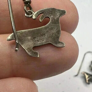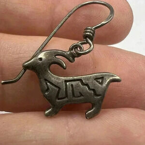 WOODS 925 Sterling Silver Signed Vintage Stamped Native Goat Dangle Earrings