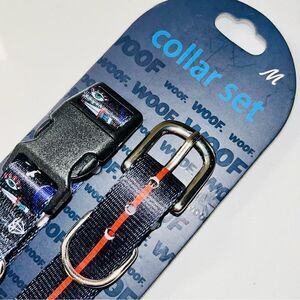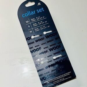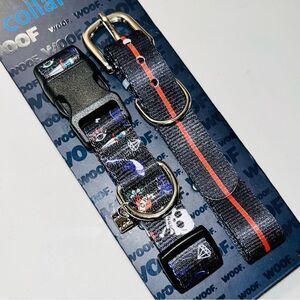 NWT - Super Cute Set of 2 WOOF Dog Collars in Size Medium. #1 is all black with a thin red stripe and #2 is Vegas Themed. Printed all over with skulls, daggers, hearts, diamonds, etc. and even has a cute dice charm. One collar for business and one for party time! Your pup will love them both. Please see photos and below for sizing info. BRAND NEW, never worn or chewed condition. Offers welcome! 🎲