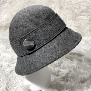 WOOL Felt hat one button detail gray like new