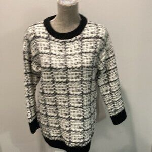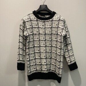 WOOL Knit White Black Tweed Crew Neck Sweater
