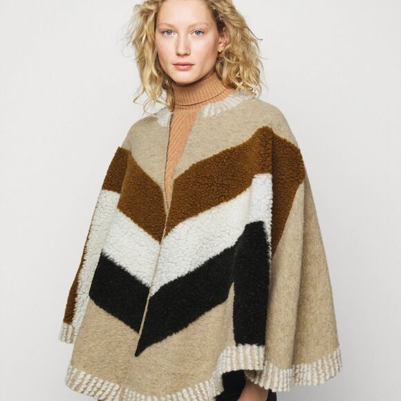 π WOOL PONCHO CAPE LAYERING NWT a.n.a. Maje OSFM Tan Brown Black Cream