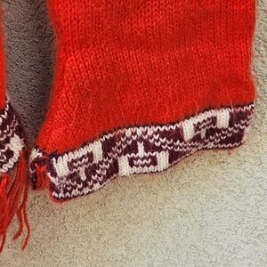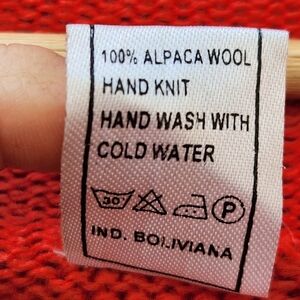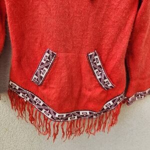 WOOLIES Women’s Sweater Large Orange Alpaca Wool Hand Knit Aztec Boho