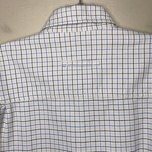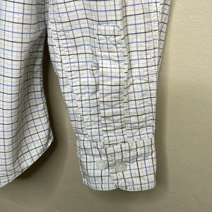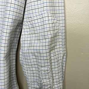 WOOLRICH Button Down Shirt TATTERSALL Blue & Creamy White Patch Chest Pockets Md