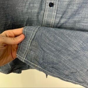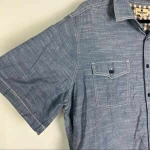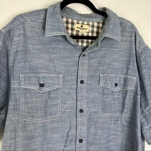 WOOLRICH Chambray Cotton Button Up Shirt Mens 2XL Short Sleeve