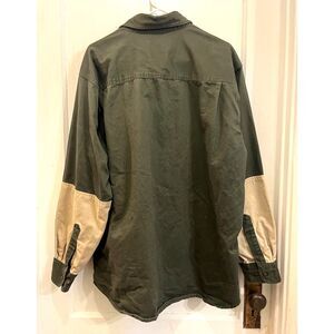WOOLRICH Green Cream Button Up Chore Jacket Shirt Top Mens Size XL