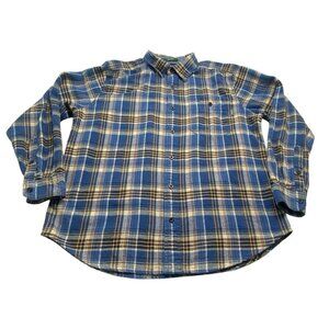 WOOLRICH Men Trout Run Flannel Shirt Blue Sz L Plaid Long Sleeve Outdoors 93-3