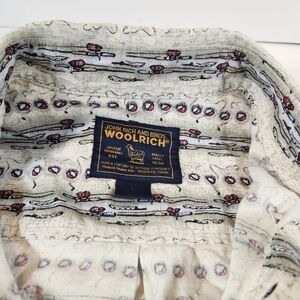 WOOLRICH Mens L Rod & Bouy Short Sleeve Button Down Camp Shirt Outdoor Fishing