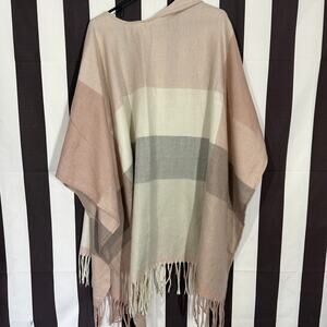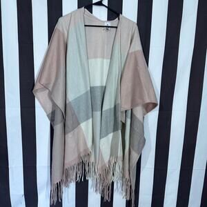 WOOLRICH Oversized Color Block Ruana Shawl Ponch Fringe Plaid Women's OS