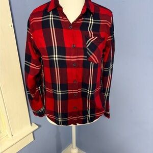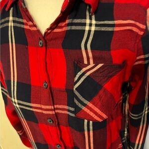 WOOLRICH Plaid Button Up Roll Tab Sleeves Rayon Shirt