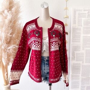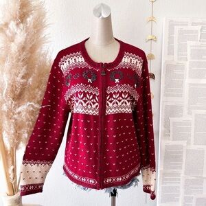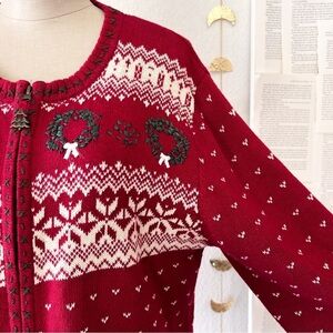 - WOOLRICH Red Christmas Wreath Zip Up Sweater