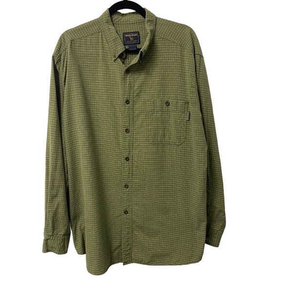 WOOLRICH SHIRT BUTTON DOWN LONG SLEEVE MENS XL CHECK LIGHT MOSS COTTON CASUAL