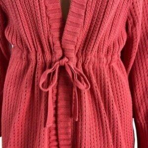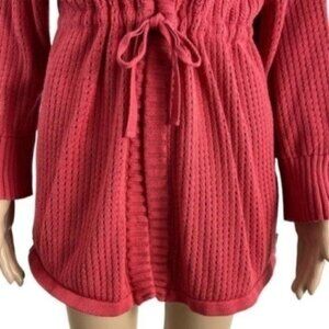 Woolrich Soft Ruby Open Knit Tie Front Cardigan Sweater 100% Cotton
