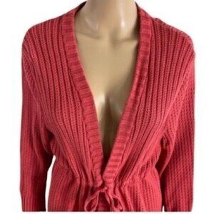 WOOLRICH Soft Ruby Open Knit Tie Front Cardigan Sweater 100% Cotton Size XL