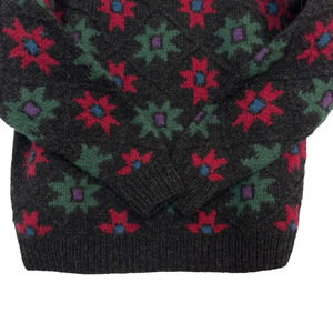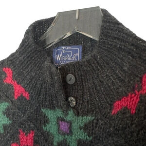 WOOLRICH Vintage 90s Sweater 100% Wool Knit Nordic Dark Gray Pullover Size XL