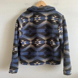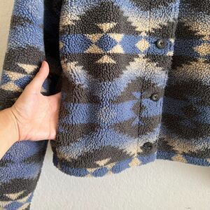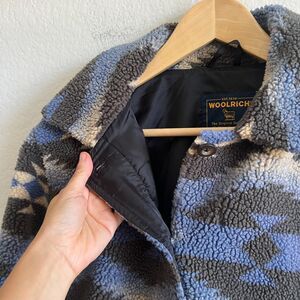 WOOLRICH Vintage Sherpa Aztec Fleece Blue Black Jacket, super comfy and cozy.