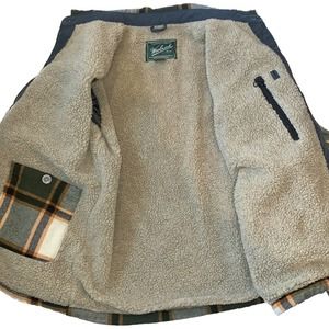 WOOLRICH Sherpa Fleece Lined Wool Plaid Checkered Button Down Shirt Coat Jacket Shacket
