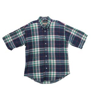 WOOLRICH Vintage Short Sleeve Plaid Shirt 90s Y2K 100% Cotton MEDIUM