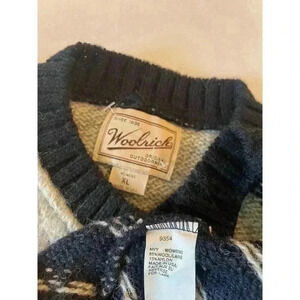 WOOLRICH Women’s Fair isle Nordic Wool Sweater Silver Button XL Blue USA Vintage