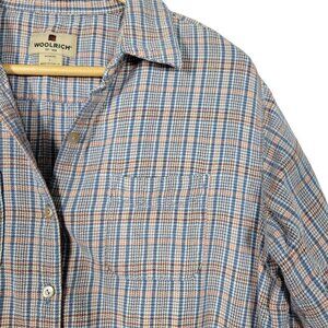 WOOLRICH Women's Light Blue Plaid Striped 100% Cotton Button Down Flannel Size L