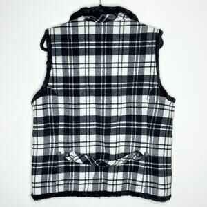 Woolrich black & white moccasin plaid cozy warm full zip vest size large