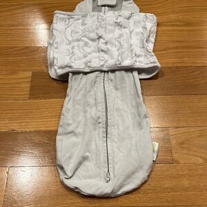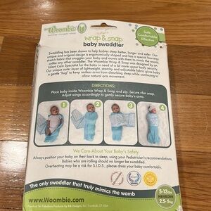 WOOMBIE boys gray/ white newborn wrap & snap baby swaddle .