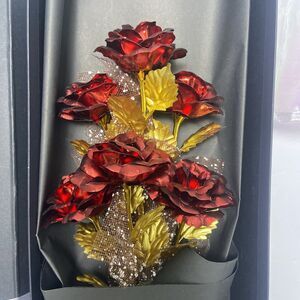 WOORI Gold-Plated Red Roses Leaves Bouquet In Black Gift Box Luxurious Elegant