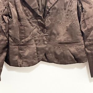 WORK TO WEEKEND Women Floral Stitch Blazer Brown One Button Closure Lined Sz 12