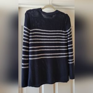 beautiful knitted navy and white stripped sweater with flared sleeves makes so a cozy and stylish outfit!