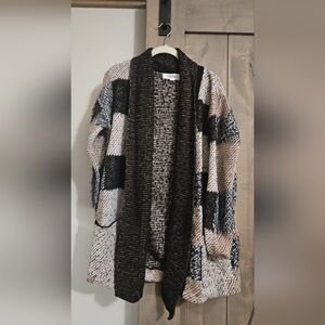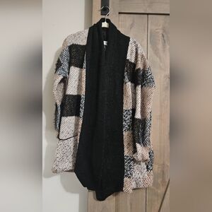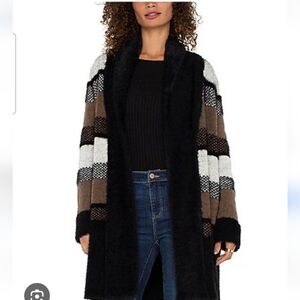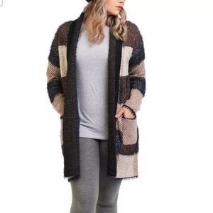WORKSHOP Republic Open-FrontEyelash Cardigan withContrast Trim -Brown/Black. SM