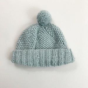 Lovely handmade winter beanie. 100% wool in a lovely, pale dusty blue. Gently worn, no noted flaws (see photos).