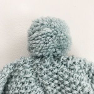 WORLD FINDS Hand Knit Wool Pom Pom Beanie Fair Trade Made In Nepal Dusty Blue