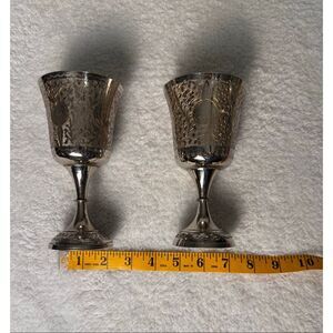 WORLD GIFT ZY INDIA Silver Plated Brass With Etched Design Set Of 2 Goblets