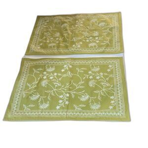 WORLD MARKET Elegant Floral Placemats Green and White 100% Cotton Set of 2
