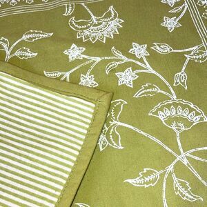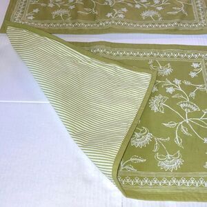 Set of 2 World Market 100% cotton placemats featuring a soft green background with a crisp white floral design