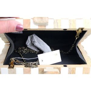 WORLD MARKET BROWN WHITE WOOD CHAIN STRAP CROSSBODY SHOULDER BAG HANDBAG PURSE