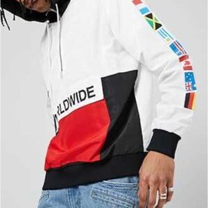 WORLDWIDE GRAPHIC ANORAK At Forever 21 Cream/red