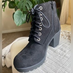 Black laced heeled boots for a Night Out! Has a velvety texture and blocky heels. I’ve used them once, but I’m not really a heel girl. They’re really comfortable, but not for me :)