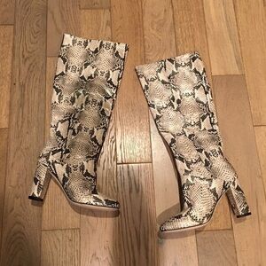 COLE HAAN Glenda snakeskin print leather boot. Size 5.5. Features leather upper and moderately padded insole for comfort. Worn once for a photo shoot.