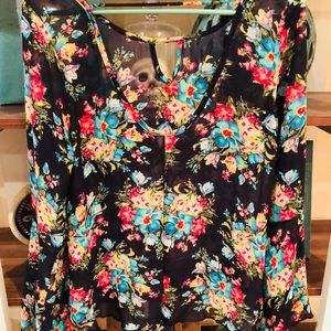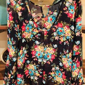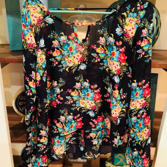 WORN ONCE Floral Chiffon Bell Sleeve Top