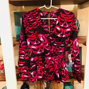 Beautiful - worn once - peplum top with elastic waist for a structured fit. Deep v-neck. Fits like an x-small/small.