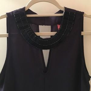 Like new condition (worn two times at most). Beautiful Plum colored top with hand stitched beaded neckline. A little longer than a regular top but shorter than your average tunic. Very flattering silhouette. Fits like a M/L. Covers maybe half of my bottom if that (5'7"). Purchased last year from Anthropologie for $98, selling for $62 (I only get $49). Willing to give even better deals on bundles of two or more items. The bigger the bundle, the better the deal! Bust: 20” length 27”