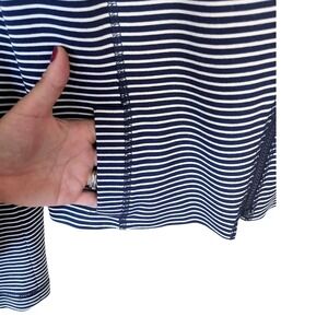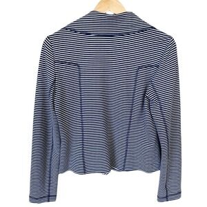 WORTH New York Jersey Moto Jacket Striped Blue White Asymmetrical Zipper Collared 6