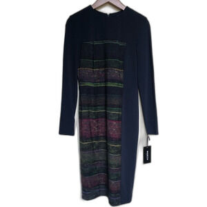 WORTH Navy Multicolor Stripe Career Sophisticated Bodycon Dress NWT Size 2