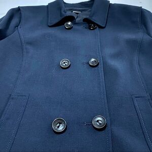 WORTH New York Blue Wool Cropped Jacket Pea Coat 14 Preppy Academia Classic