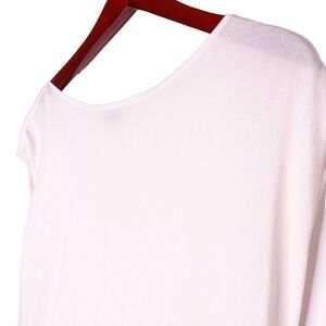 Sleeveless Wide Open Arm Knit Top from Worth New York. This Top features a sleeveless style with a wide open arm cuff. Double layer knit with an inner V neckline shell that is attached at the top of shoulder. Banded hemline with a raw edge hem. Very Fine ribbed knit fabric construction in a Rayon, Nylon and Elastane blend. Solid White. Beautiful, versatile staple for your closet wardrobe.