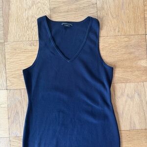 WORTH New York Large Navy Wool Blend Sleeveless V Neck Knit Midi Dress