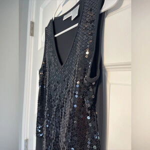 WORTHINGTON Black Sequins Front Sleeveless V-Neck Tank Style TOP, Size M Petite