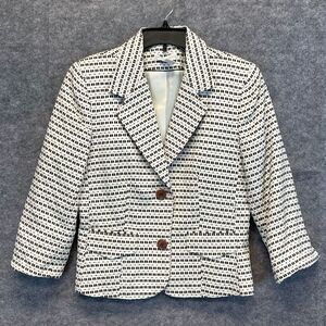 WORTHINGTON Jacket Women's Size 10 Ivory Brown Tweed Blazer Lined Two-Button